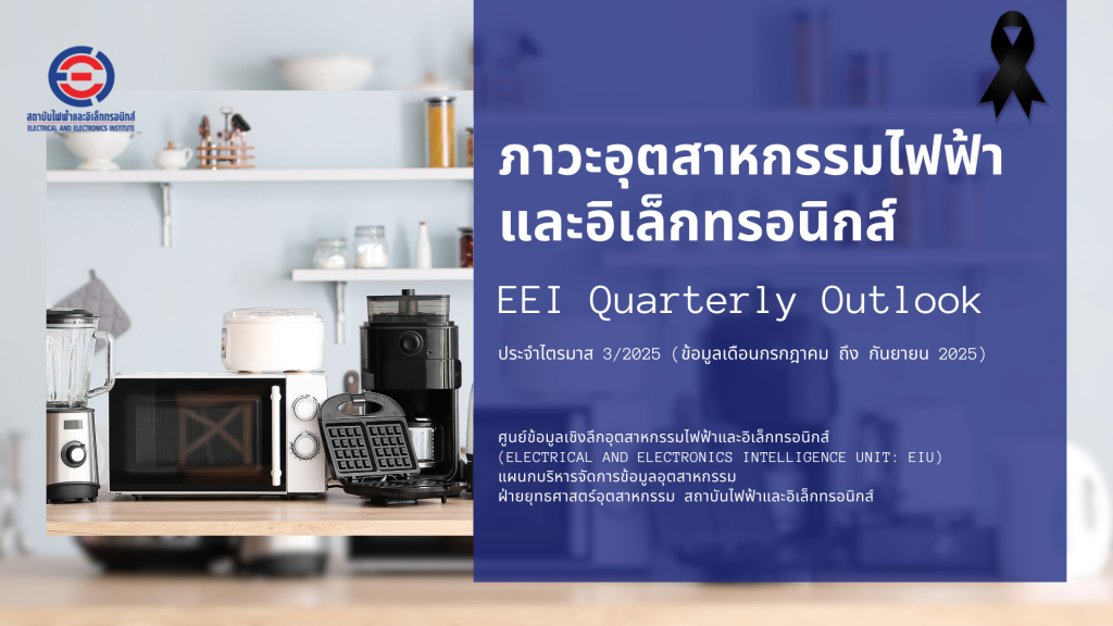 การส่งออกของอุตสาหกรรมเครื่องใช้ไฟฟ้าและอิเล็กทรอนิกส์ โดยกลุ่มเครื่องใช้ไฟฟ้าในที่นี้รวมถึงอุปกรณ์ไฟฟ้ากำลังด้วย พบว่า ในไตรมาสที่ 3/2025 สถานการณ์การส่งออกเครื่องใช้ไฟฟ้าของไทย ขยายตัวเพียง 3.17%